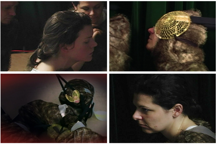 “I am the animal,” Lenore announces in tandem with Derrida, who admits that “my animal figures multiply, gain in insistence and visibility, become active, swarm, mobilize and get motivated, move and become moved all the more as my texts become more explicitly autobiographical, are more uttered in the first person”(35). What is visible in the video, as it is in Derrida’s figures (and I would say unlike the texts of Deleuze or Agamben), is what Derrida calls the irreducible hetero-affection at the seat of the I—the imaginative capacity or vulnerability to be affected or moved by an other or other-animal that infects the very autonomy of the I and, with it, any simple delimitation between man and animal—or, in this case, woman, animal, and machine. It is in heter-affection that we viewers follow the animal-other and in step with the “beat beat beat” of the tom-tom.